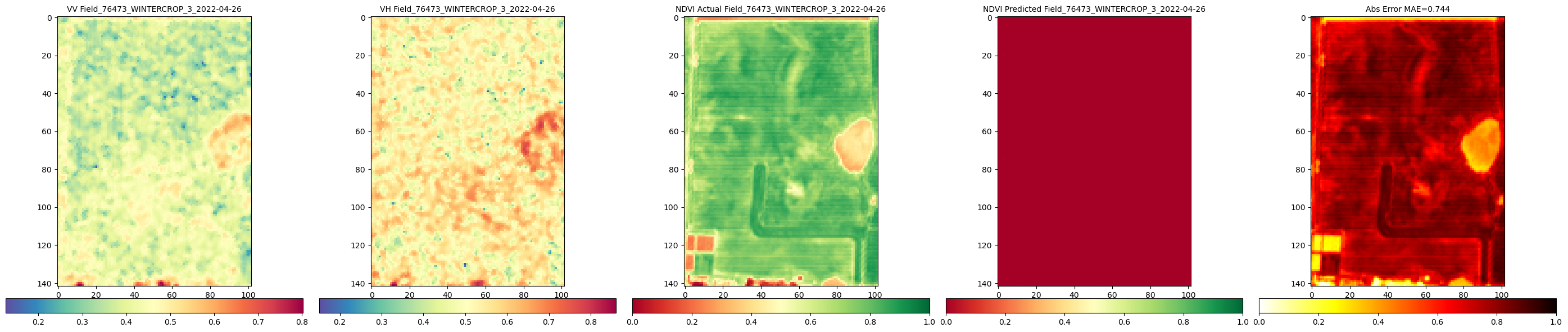 In this tutorial we will see how to train a U-Net model from scratch for predicting NDVI from Sentinel 1 Images and Validate the predictions with the ground truth NDVIS generated from Sentil 2 Optical data.
