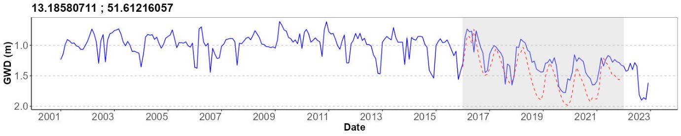 geom_line(data = filtered_observed, aes(x = Date, y = GWD), color = "red", linetype = "dashed") +